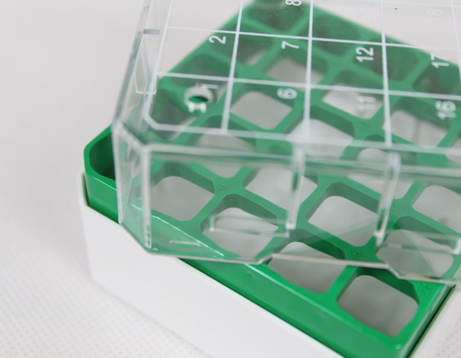 Pudełka poliwęglanowe do zastosowań w laboratoriach, w biologii molekularnej, genetyce, instytutów weterynaryjnych, centrów onkologicznych, uczelni medycznych i szpitali.