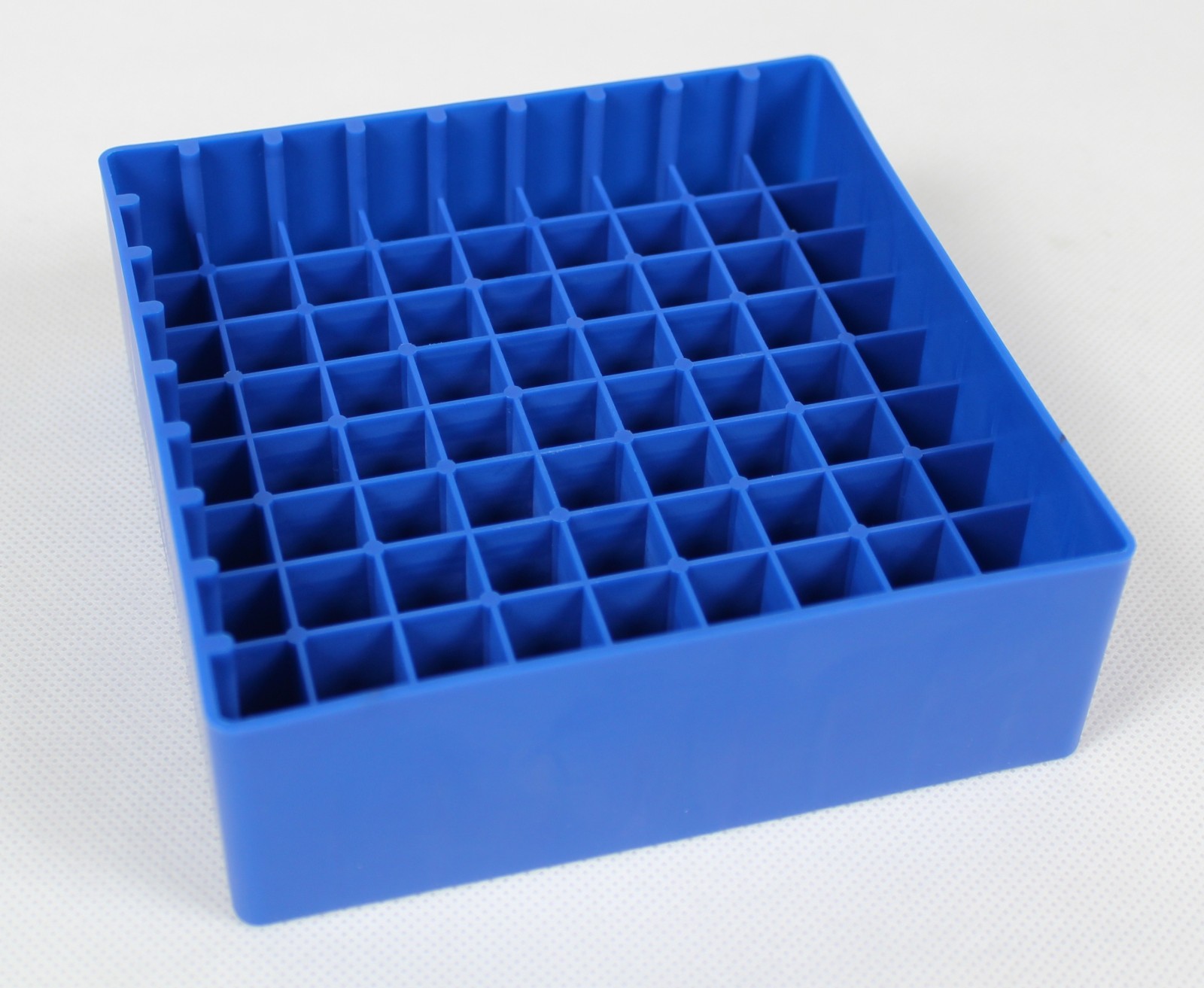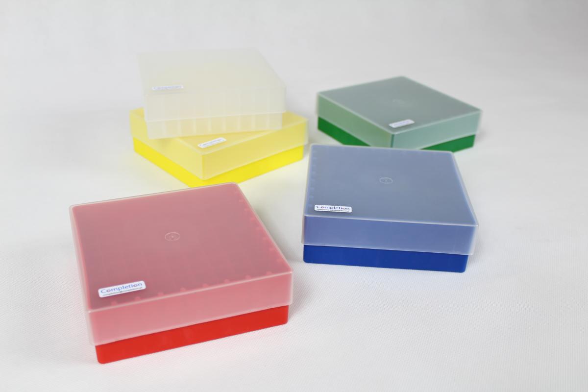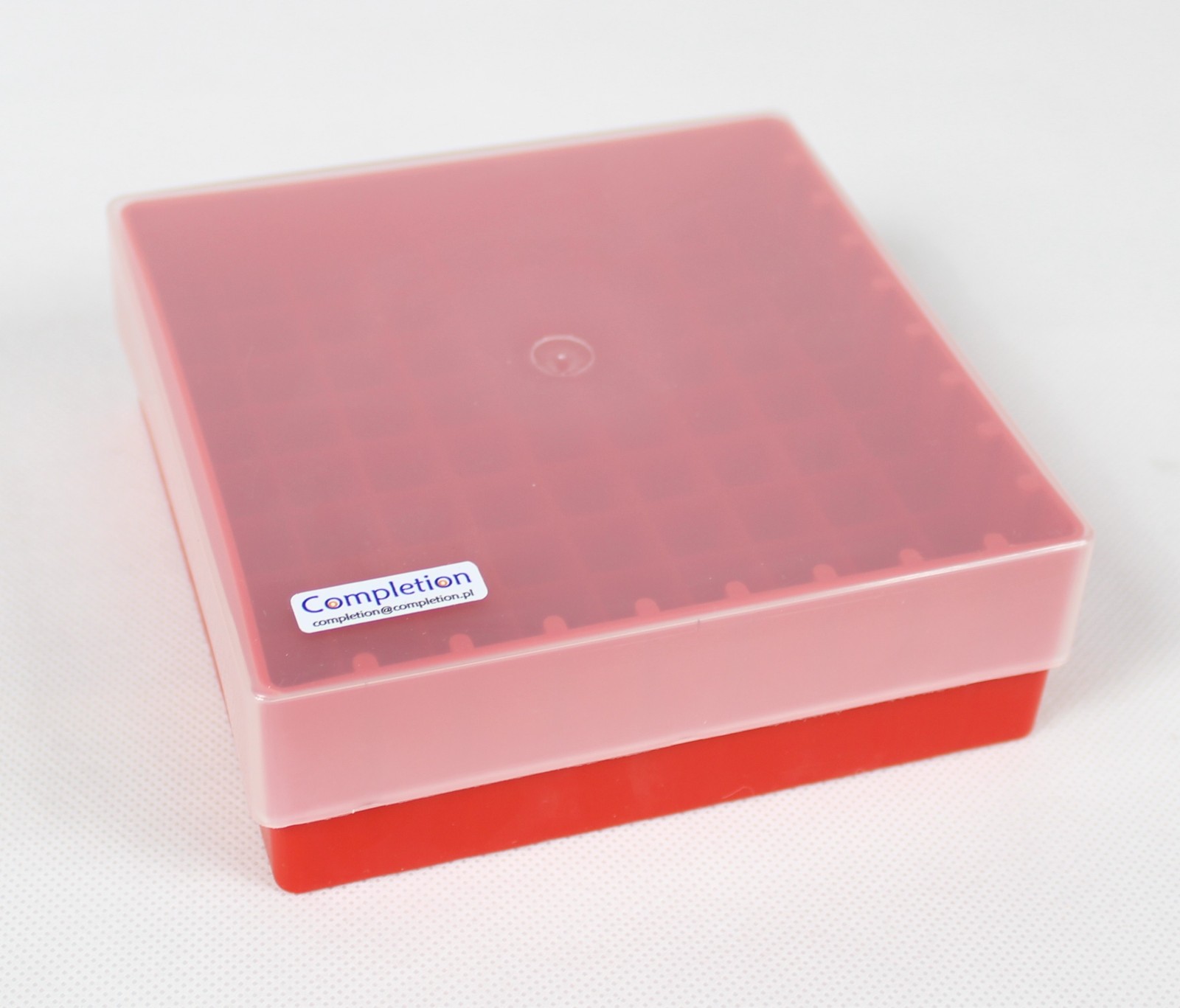 Pudełka plastikowe wykonane z polipropylenu. Kriopudełka o standardowych wymiarach 131x131x45[mm] na 81 probówek typu Eppendorf 1,5-2,2ml.